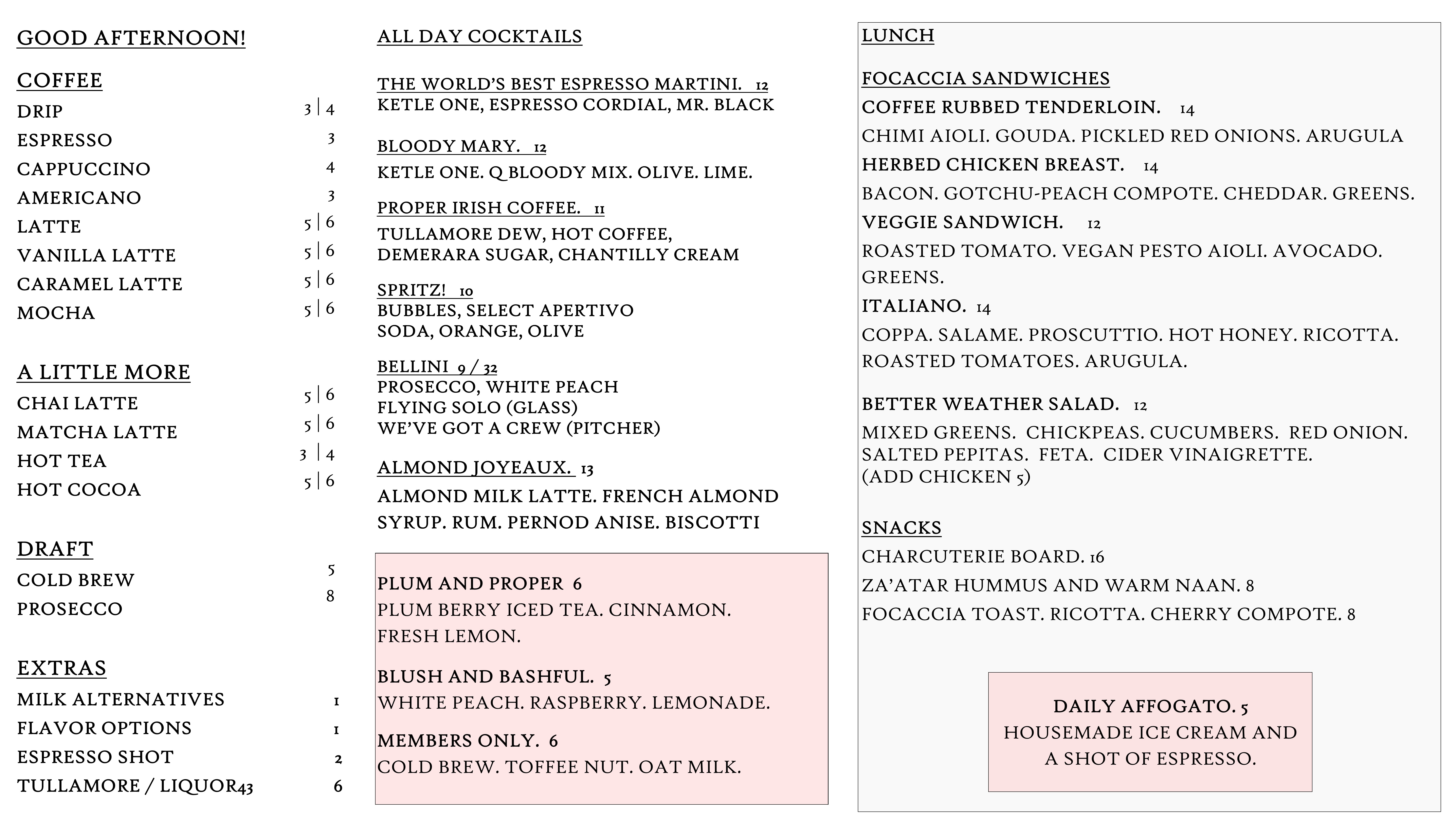 Featuring Duck Rabbit Coffee, our full service coffee program is thoughtful and focused.