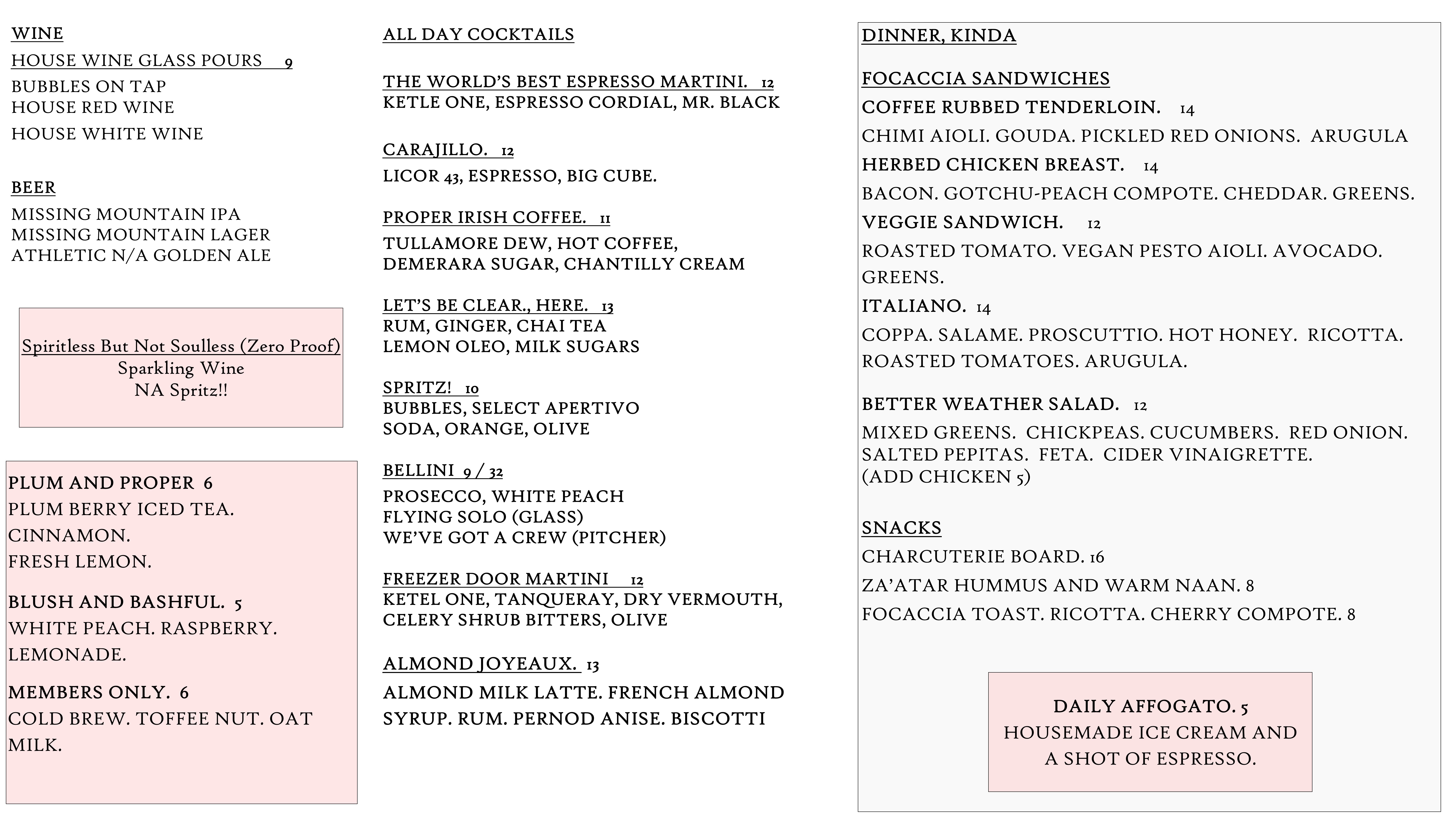 Thyme Table's Eric Scott has created a refined list of classic cocktails and non-alcoholic beverages for everyone to enjoy.
